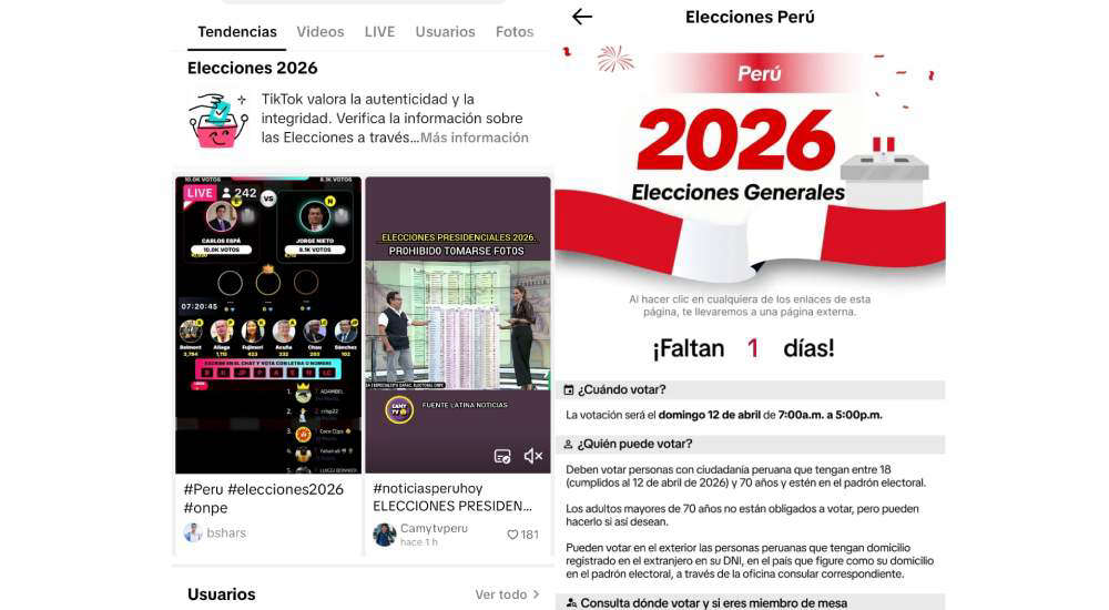 TikTok es una plataforma donde las personas vienen a crear, descubrir y conectarse con lo que más les importa. En este sentido, con el objetivo de brindar a la ciudadanía información veraz, confiable y combatir la desinformación de cara a las elecciones del próximo 12 de abril, la Oficina Nacional de Procesos Electorales (ONPE) y TikTok se aliaron para desarrollar una guía informativa de cara a las Elecciones Generales de 2026.