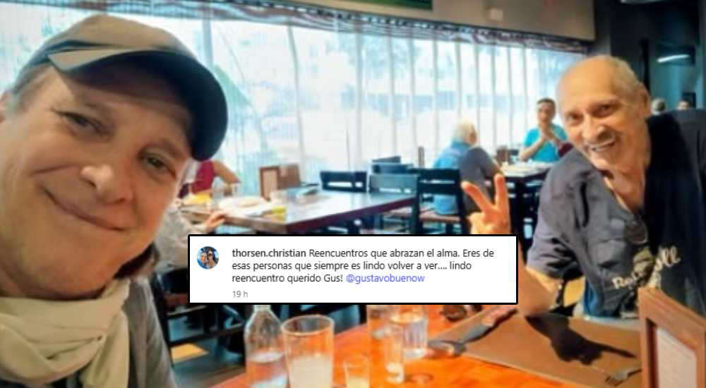 En esa línea, Christian Thorsen compartió una imagen del reencuentro que tuvo con Gustavo Bueno, recordado por su papel de Don Gilberto, luego de varios años sin verse. En la fotografía se les observa sentados en un restaurante, relajados y sonrientes, reflejando un momento íntimo y natural entre ambos actores.