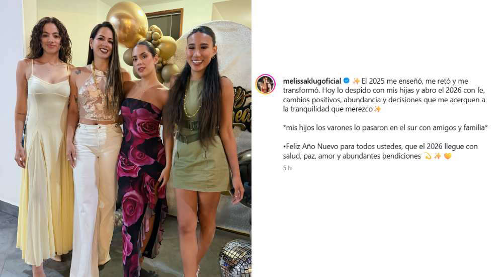 Para evitar especulaciones, Melissa Klug decidió aclarar la situación en la descripción de su publicación. “El 2025 me enseñó, me retó y me transformó. Hoy lo despido con mis hijas y abro el 2026 con fe, cambios positivos, abundancia y decisiones que me acerquen a la tranquilidad que merezco”, escribió la empresaria.