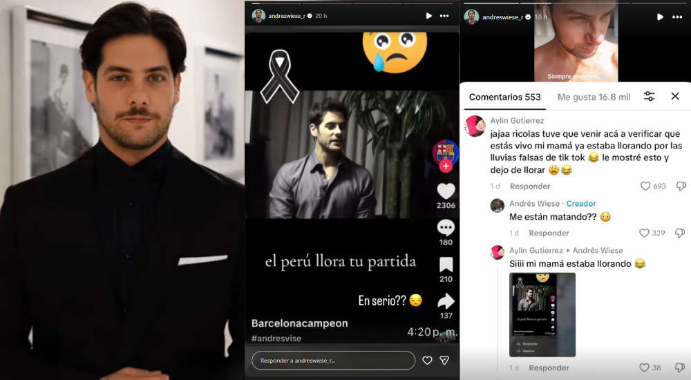 Fue el propio Andrés Wiese quien salió al frente para desmentir esta noticia. A través de su cuenta oficial de Instagram, el actor compartió su reacción al ver el video y expresó su molestia ante este rumor. "¿En serio?", escribió de manera tajante, acompañado de un emoji de rostro enojado.