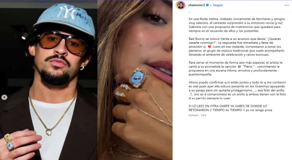 Según 'Chamonic', Benito Martínez le habría pedido la mano a Gabriela en Puerto Rico, cuando presentaba su residencia 'No Me Quiero Ir de Aquí'. Además, recalcó que este momento fue sumamente íntimo, ya que solo asistieron amigos y familiares.
