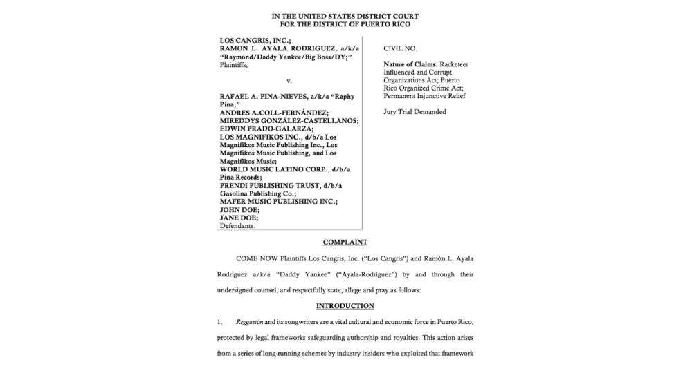 El documento radicado en el Tribunal Federal menciona el RICO Act y la Ley de Crimen Organizado de Puerto Rico. Según se detalla, estas normas se invocan porque supuestamente existió una estructura organizada para apropiarse de derechos de autor y desviar regalías que pertenecían al “Big Boss” y a otros intérpretes.