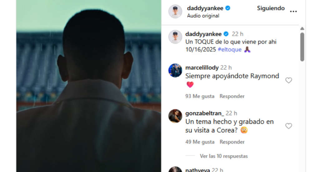 Daddy Yankee anunció en sus redes sociales el lanzamiento de su nuevo tema ‘El toque’, que estará disponible este jueves 16 de octubre. Esta canción formará parte de su próximo álbum titulado ‘Lamento en baile’, cuyo estreno está programado para el 26 del mismo mes.