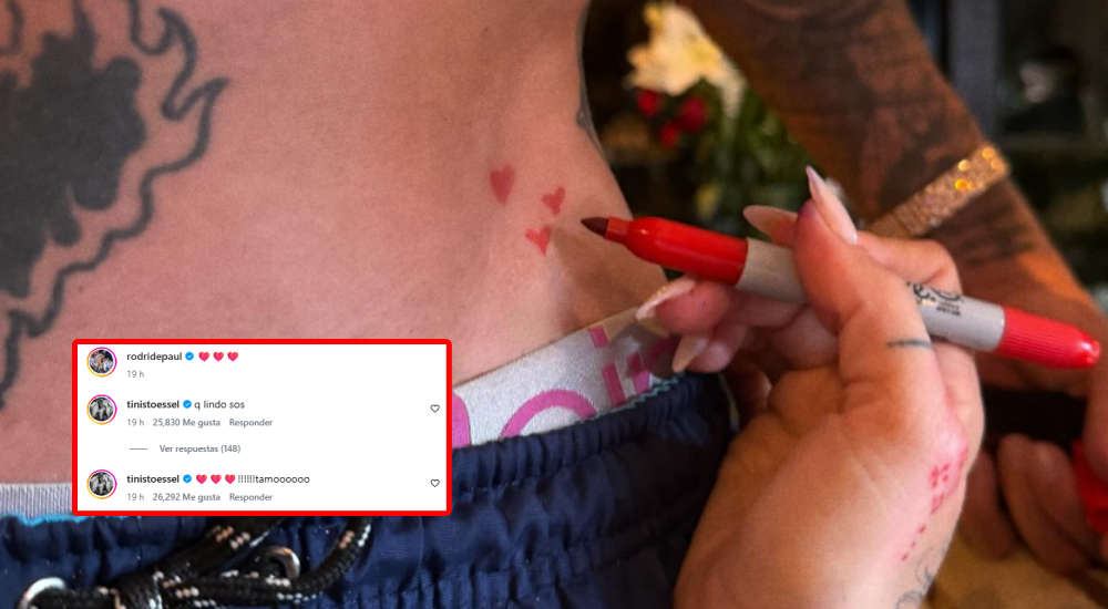 Uno de los videos publicados muestra que la cantante argentina le dibujó diversos corazones en la parte inferior de su abdomen. Posteriormente, el futbolista optó por tatuárselos y llevar siempre este tierno detalle que hizo Tini en su piel.